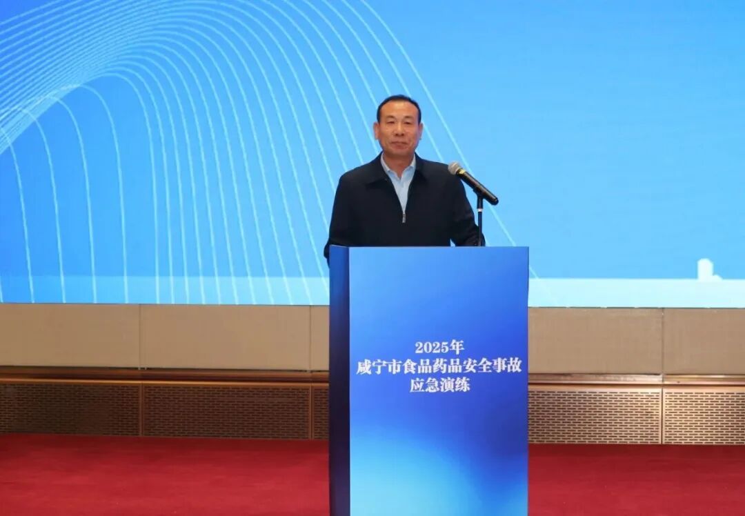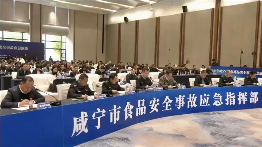 11月4日,2025年咸宁市食品药品安全事故应急演练活动在嘉鱼县举行。市政府副秘书长谢晋担任本次演练活动指挥长。省市场监管局、省药品监管局相关负责同志,咸宁市食品药品安全委员会各成员单位分管负责同志,各县市区政府分管负责同志、市场监管局主要和分管负责同志,嘉鱼县食品药品安全委员会成员单位、高校、中小学校、幼儿园负责人共360余人观摩演练。