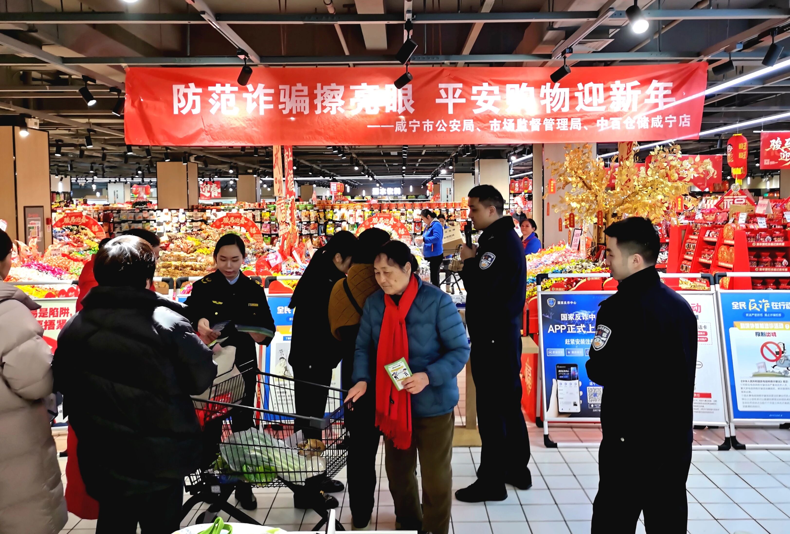 年关将至,各类电信网络诈骗案件进入高发期,为织密全民反诈防护网,守护群众财产安全,1月29日,咸宁市市场监管局牵头联合市公安局等部门,在中百仓储咸宁店开展“反诈进超市”宣传活动,将反诈知识送到群众身边。