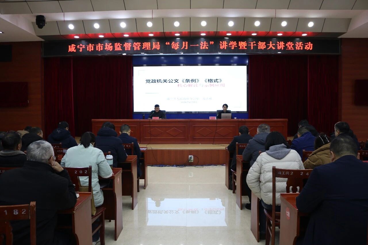 为深入贯彻落实市委、市政府关于公文处理工作的部署要求,提升机关办文规范化、科学化水平,2月9日,市市场监管局举办2026年第2期“每月一法”讲学暨干部大讲堂活动,以“专题讲座+知识测试”模式,为全局干部职工精准赋能。