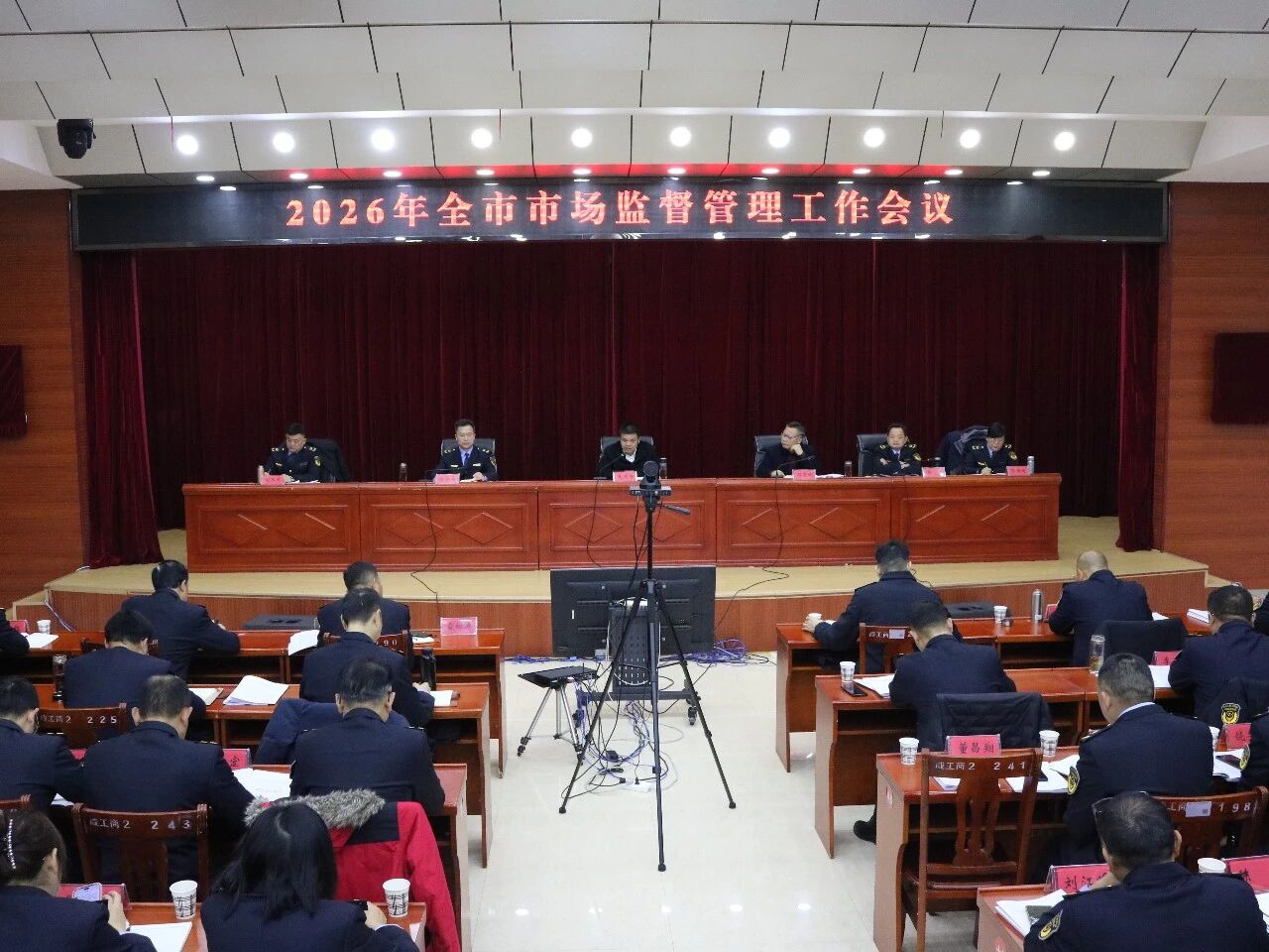 市局领导班子成员,其他县级干部,各科室、所属单位负责人,执法支队班子成员、各大队大队长,各县(市、区)市场监管局主要负责同志、办公室主任参加会议。各县(市、区)政府分管负责同志、市场监管局班子成员,各股(室)、基层监管所负责人以视频形式参会。